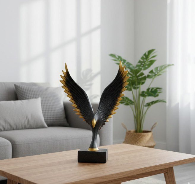 Featuring a bold black body with luxurious gold accents, this stunning eagle symbolizes strength, vision, power, and success — making it a perfect centerpiece for your home, office, or studio.