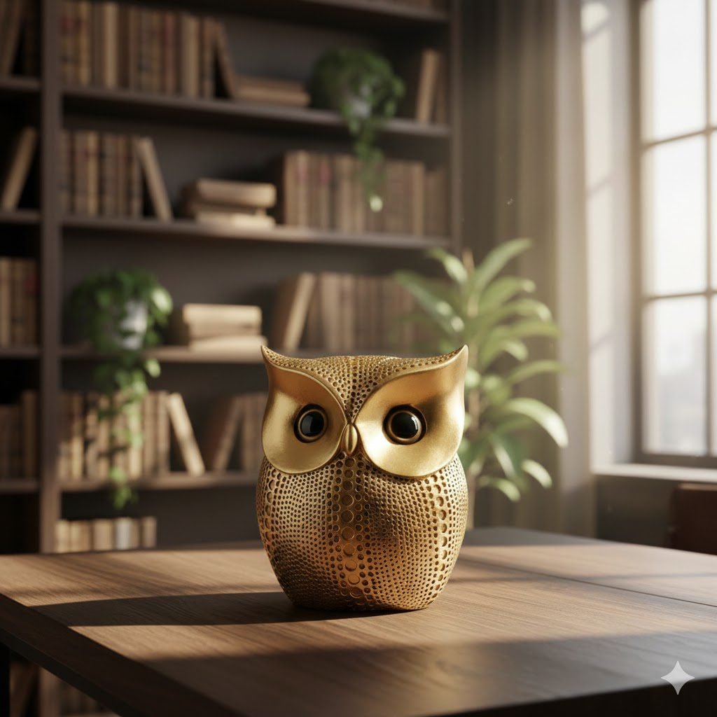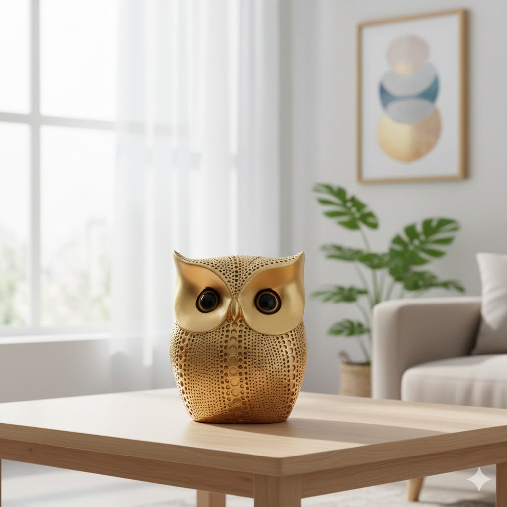 Golden Owl Resin Showpiece – A Modern Symbol of Wisdom by Indihandmades