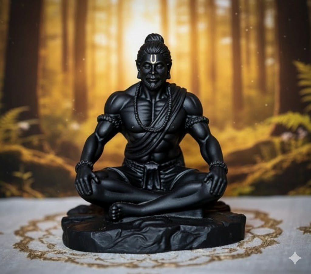 A Premium Meditating Hanuman Black Idol by Indihandmades