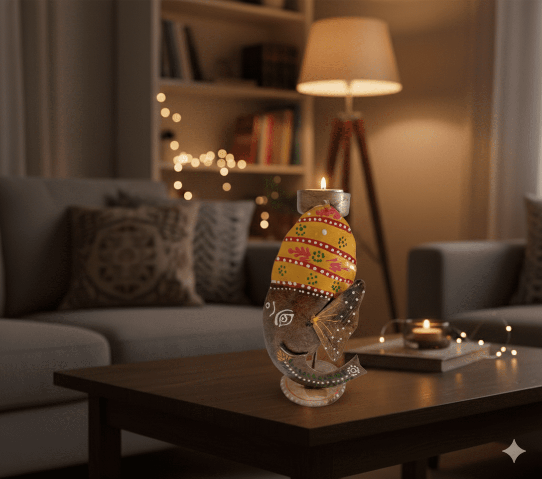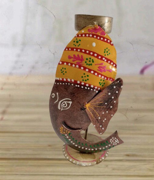 Bring divine charm and traditional artistry into your home with this Handcrafted Rajasthani Metal Ganesha Tea Light Holder from Indihandmades.