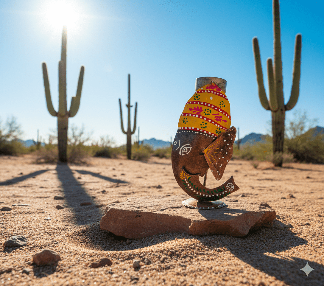 Each piece is hand-painted by skilled artisans, giving it a one-of-a-kind finish and premium handcrafted appeal. The durable metal structure ensures long life, while the bright colours and intricate detailing make it a perfect centerpiece for living rooms, entry consoles, pooja shelves, office desks, or festive displays.