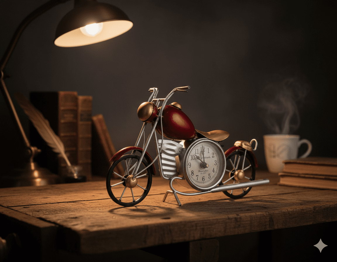 Add a bold and artistic element to your home décor with this Red Vintage Motorcycle Table Clock by Indihandmades.