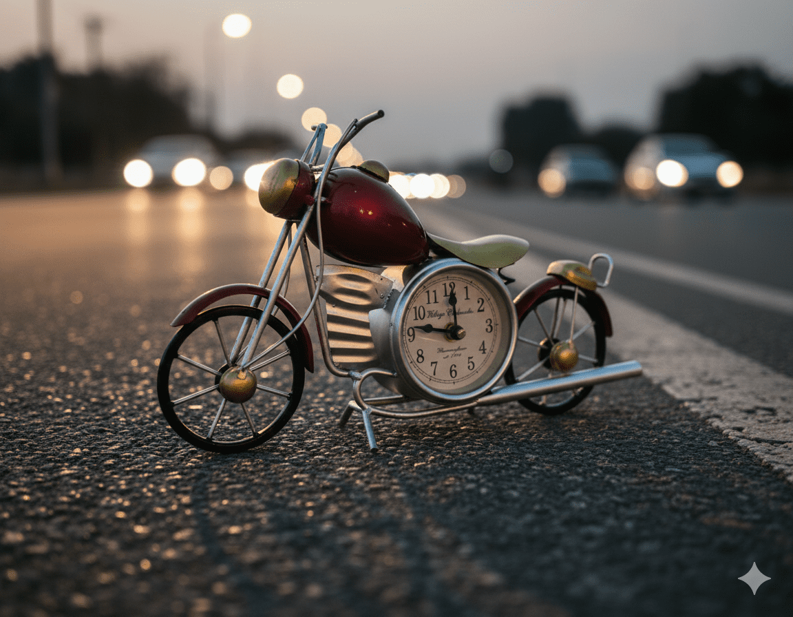 Red Vintage Motorcycle Table Clock – Metal Bike Showpiece by Indihandmades