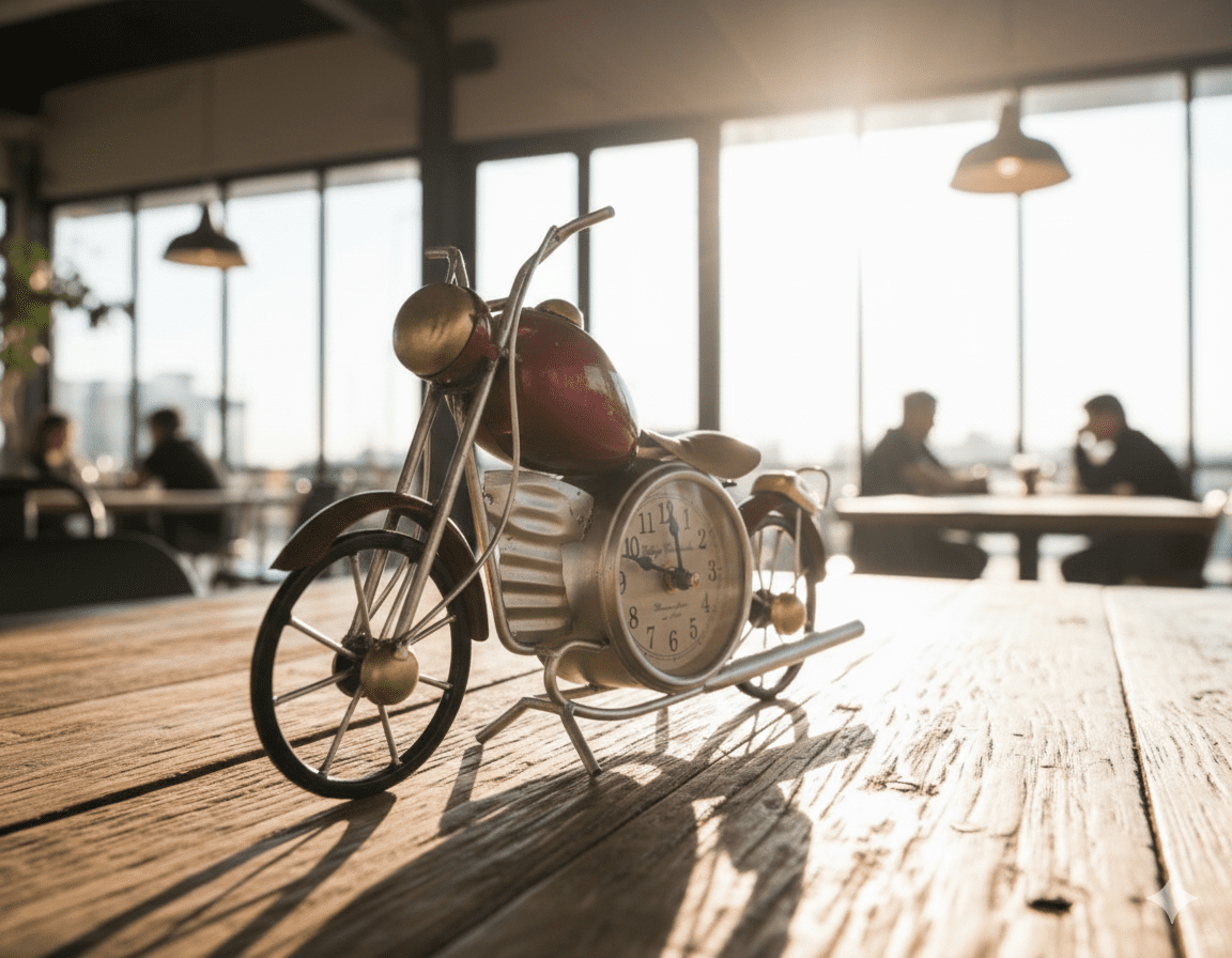 The centerpiece analog clock gives it practical value, while the motorcycle-shaped frame adds a rustic, vintage charm ideal for: