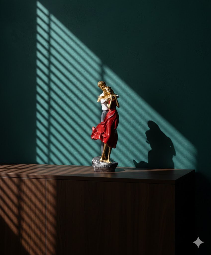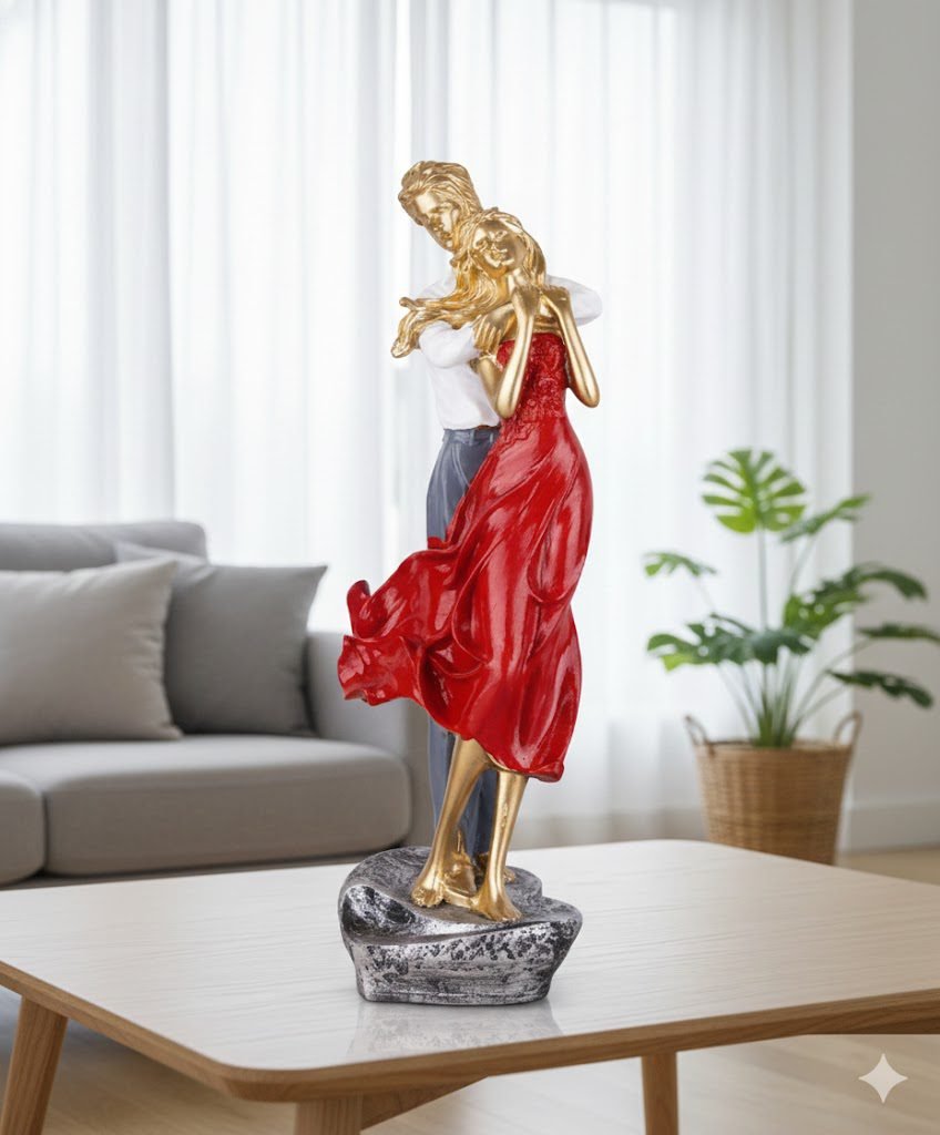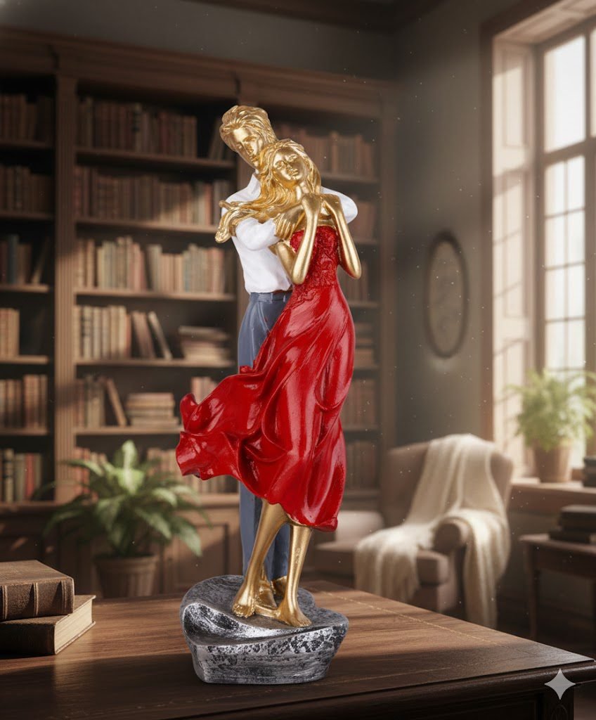 Celebrate the essence of love, connection, and togetherness with the Indihandmades Romantic Couple Resin Figurine. Designed with exquisite craftsmanship, this stunning showpiece beautifully captures the emotion of two lovers in a graceful embrace. The flowing red dress, gold-toned highlights, and expressive detailing make it a breathtaking centerpiece for any modern home.