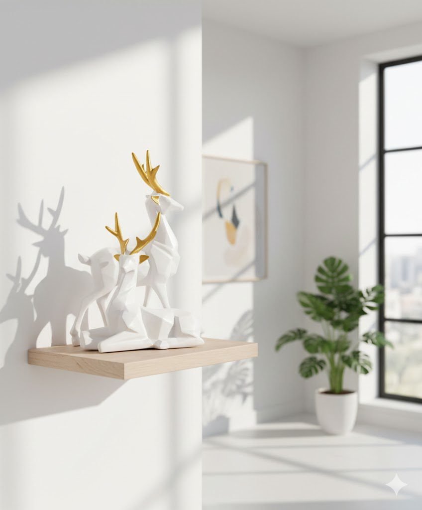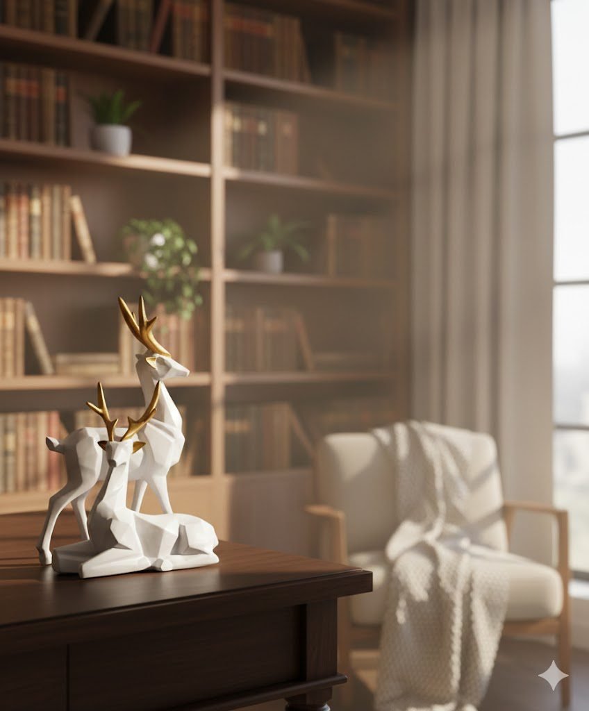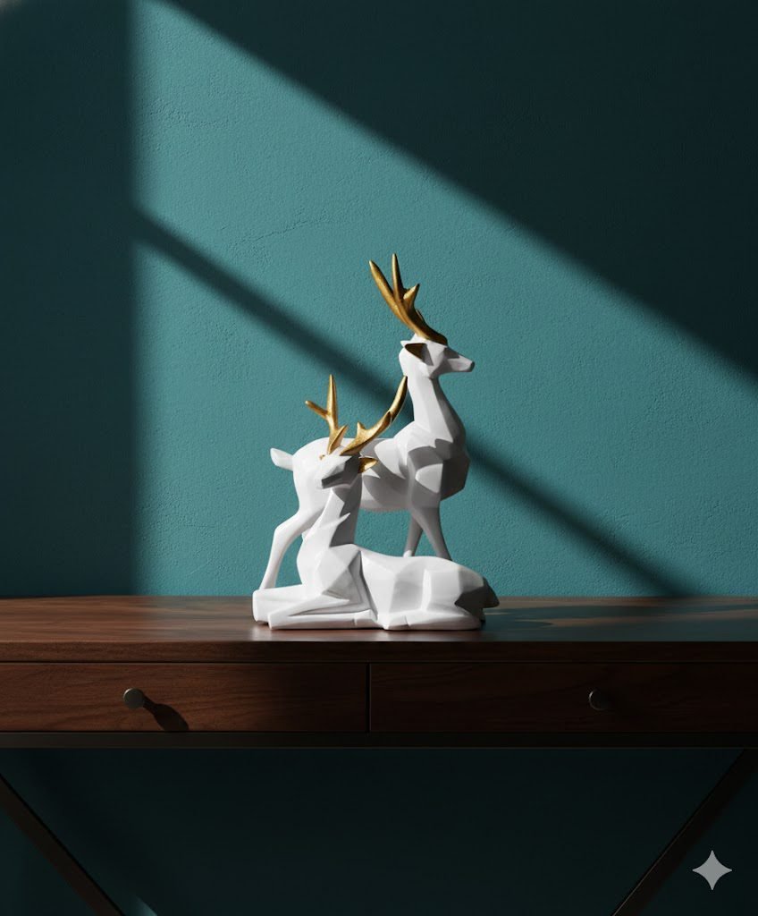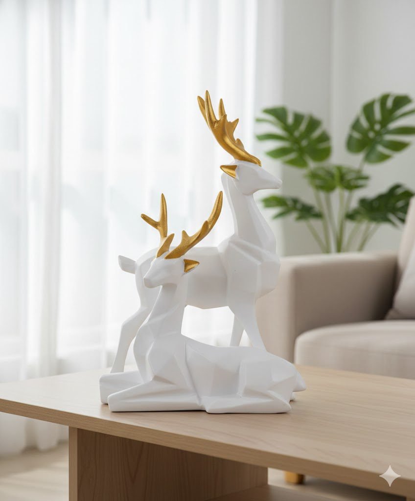 Crafted with premium-quality resin, the smooth white body paired with gold-accented antlers creates a stunning contrast, making it a perfect centerpiece for living rooms, shelves, entryways, and office spaces. Whether you are decorating for festivals, adding minimalistic charm, or looking for a meaningful gift, this stylish deer set fits every purpose.